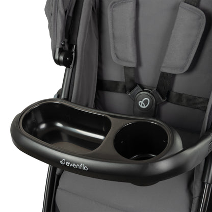 Upgraded wheels deliver the smooth ride parents have been asking for, and the convenient self-standing trigger fold makes storage effortless. Premium touches include a leatherette handle, parent cupholder, supersized 20 lb storage basket, BPA-free child snack tray, and expansive 3-panel UPF 50+ canopy with peek-a-boo window. GREENGUARD Gold Certified for low chemical emissions, this versatile travel system makes parenting easier with unmatched convenience and style.