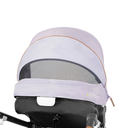 Introducing parenting on the go raised to a higher standard: The Evenflo® Shyft™ Intuiti+™ Stroller. With maneuverability that feels intuitive, this luxe stroller boasts all-wheel suspension and premium rubber tires to cushion the bumps along the way. Its modular frame allows you to parent-face or forward-face your baby in all modes: infant car seat (car seat sold separately), toddler seat and lay-flat carriage. The articulated leatherette handle adjusts to three positions, allowing you to find your most comfortable height. The extra-large, expandable UPF 50+ canopy helps protect against the elements and grows with your child to 43 in. (weighing up to 55 lb) with three adjustable heights. This refined stroller is loaded with thoughtful extras, including an extra-large stroller basket with a hidden pocket for small essentials, linked brakes to lock both rear wheels at once, a BPA-free child tray for snacks on the go and a convenient parent cup holder. The stroller also features plush, sustainable Green & Gentle™ Fabric woven from recycled plastic bottles and free of added chemicals and flame retardants. Intending this for your tiny rider? Shyft Intuiti+ is compatible with Evenflo Revolve180™ LiteMax™ NXT Rotational Infant Car Seats and LiteMax™ NXT Infant Car Seats (both sold separately).Families have trusted Evenflo for more than 100 years for smart, innovative gear designed to make life easier, safer and more comfortable at home and on the go. Let us help you save time and find peace of mind, so you can focus on what matters most: your child.